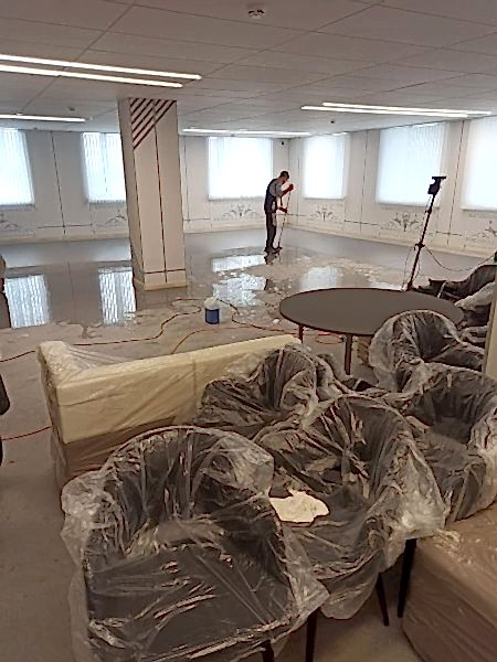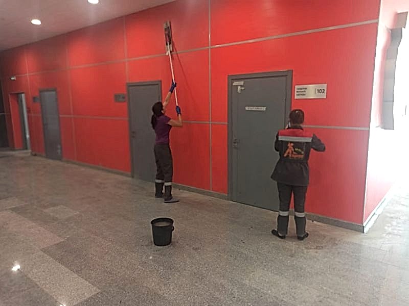 Услуги клининга, в рамках подготовки к сдаче после строительства Алматинского кадетского военного корпуса, г. Алматы, ул. 60 лет Победы, 18, август 2021 года.