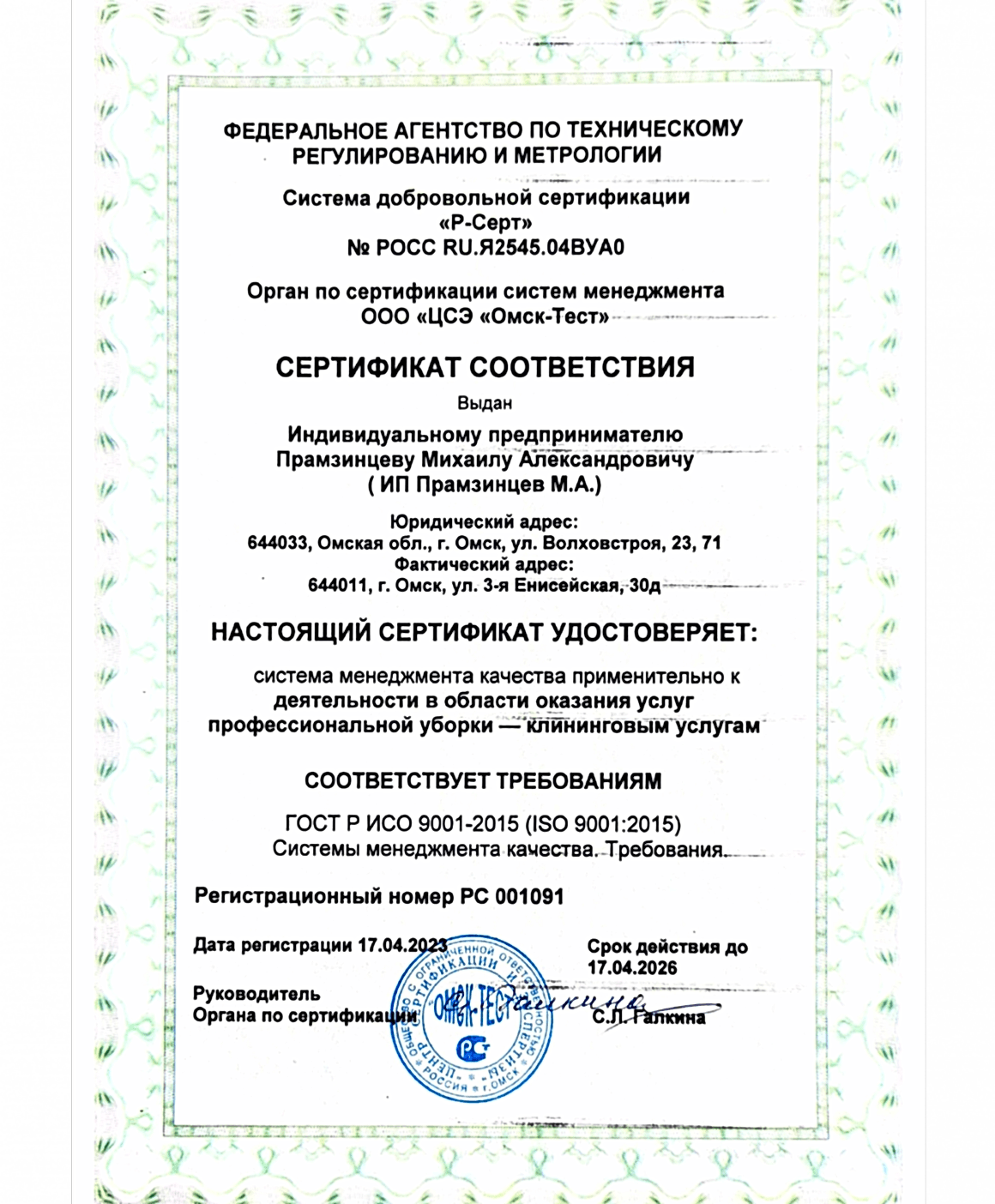 ·В нашей компании функционирует система менеджмента качества ГОСТ ₸ ИСО 9001-2015;