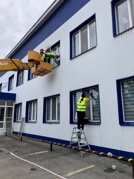 При необходимости применяется метод промышленного альпинизма и Pin Up